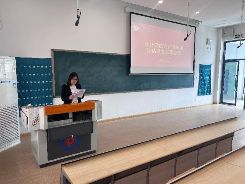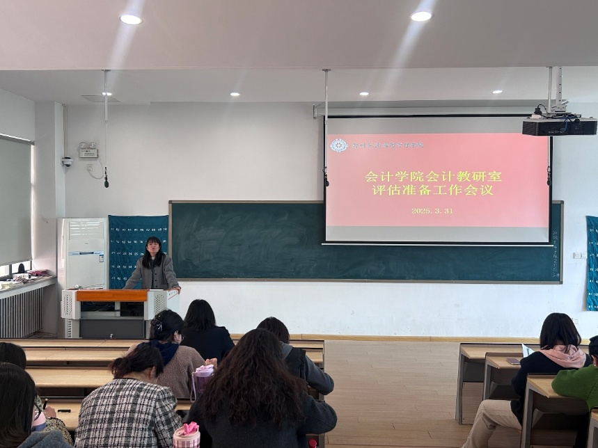 为扎实做好教学评估准备工作,提升教学质量,3月31日中午,会计教研室在4号楼208教室召开评估准备工作会议,会议由会计教研室主任车伟娜老师主持,会计教研室全体教师参加会议。此次会议聚焦教学评估各项关键事宜,为学校迎接评估做好充分准备。