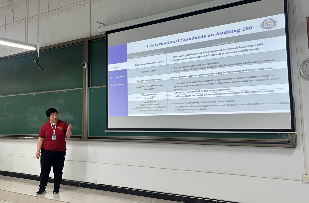 刘之茵老师展示了《Audit and Assurance》课程思政教学设计,以全英文教学的独特形式,系统解读ISA 国际审计准则 200,并结合自身海外学习经历,将爱国情怀与文化自信自然融入到课程教学之中。