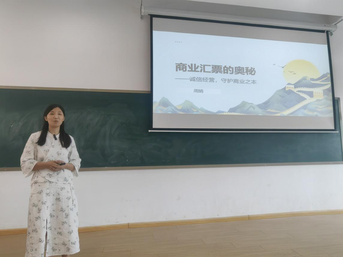 周娟老师展示了《经济法基础》课程中“商业汇票的奥秘”教学设计,引入“王一鸣零食”资金不足支付贷款这一情境,着重讲解了商业汇票的奥秘。