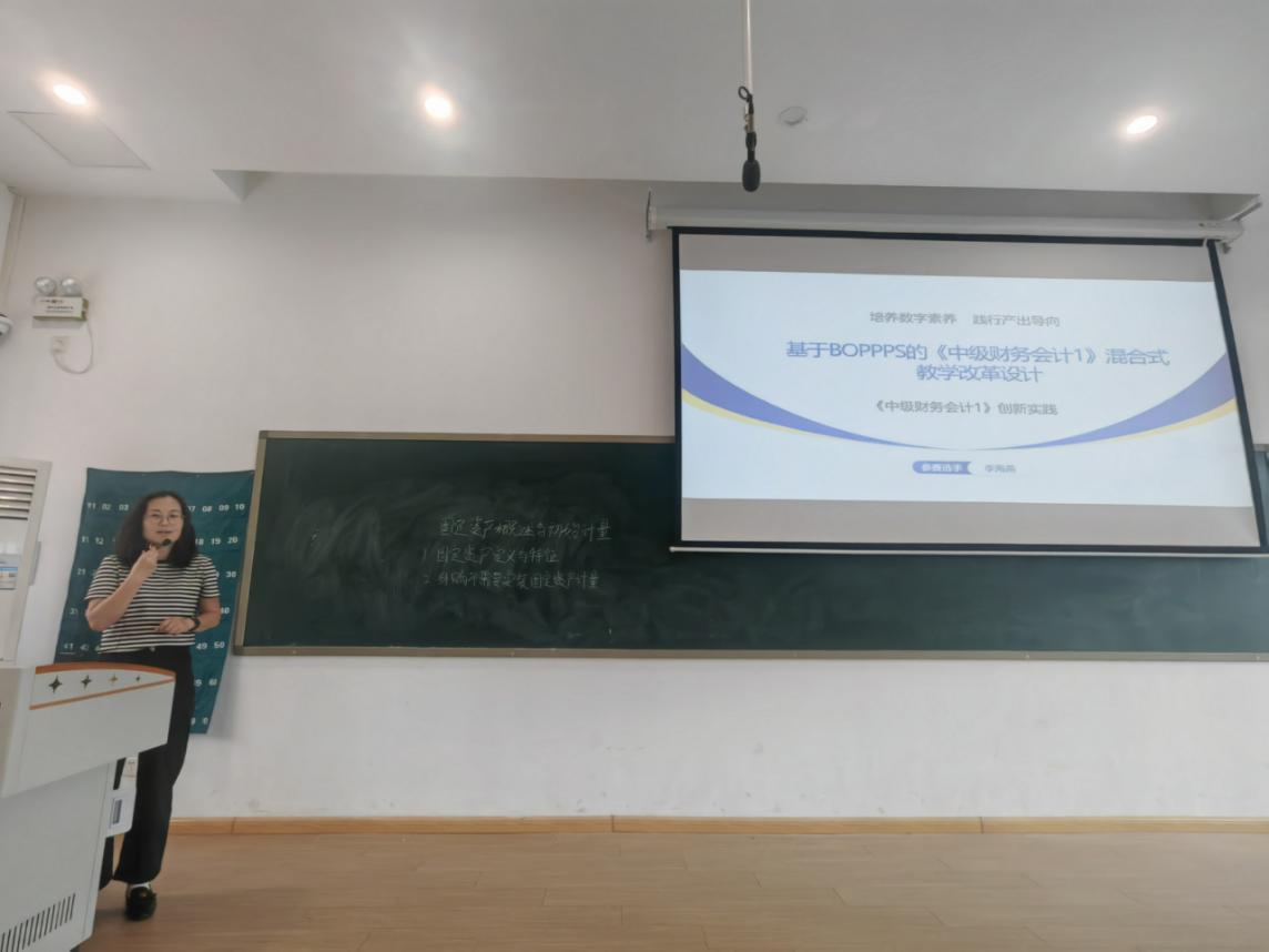 李海燕老师展示了《中级财务会计I》课程中“固定资产”教学设计,以豫金刚财务造假案为切入点,生动介绍了基于BOPPPS 的《中级财务会计I》混合式教学改革。