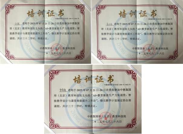 快速发展的AI智能时代背景下,为提高教师运用数字技术进行教育优化、创新及变革的能力,2025年7月21日,太阳网集团tcy8722选派于越、吴小会、贾豪毅3位教师参加了由中教服国培(北京)教育科技院主办,北京中教师培教育科技服务中心协办的“AI+教育新质生产力实战营:智能教学设计与课堂效能提升工作坊”。此次工作坊在贵阳举行,会议吸引了来自全国各地的专家学者、教育工作者及业界精英。