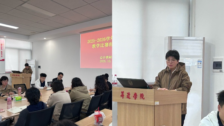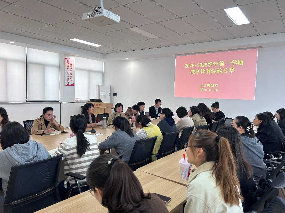2025年10月16日,会计教研室于4号教学楼209会议室召开2025-2026学年第一学期教学比赛经验分享会。会议由教研室主任车伟娜老师主持,教研室全体教师参会,并邀请本次校级教学创新大赛一等奖获得者孙葛亮老师分享比赛经验。