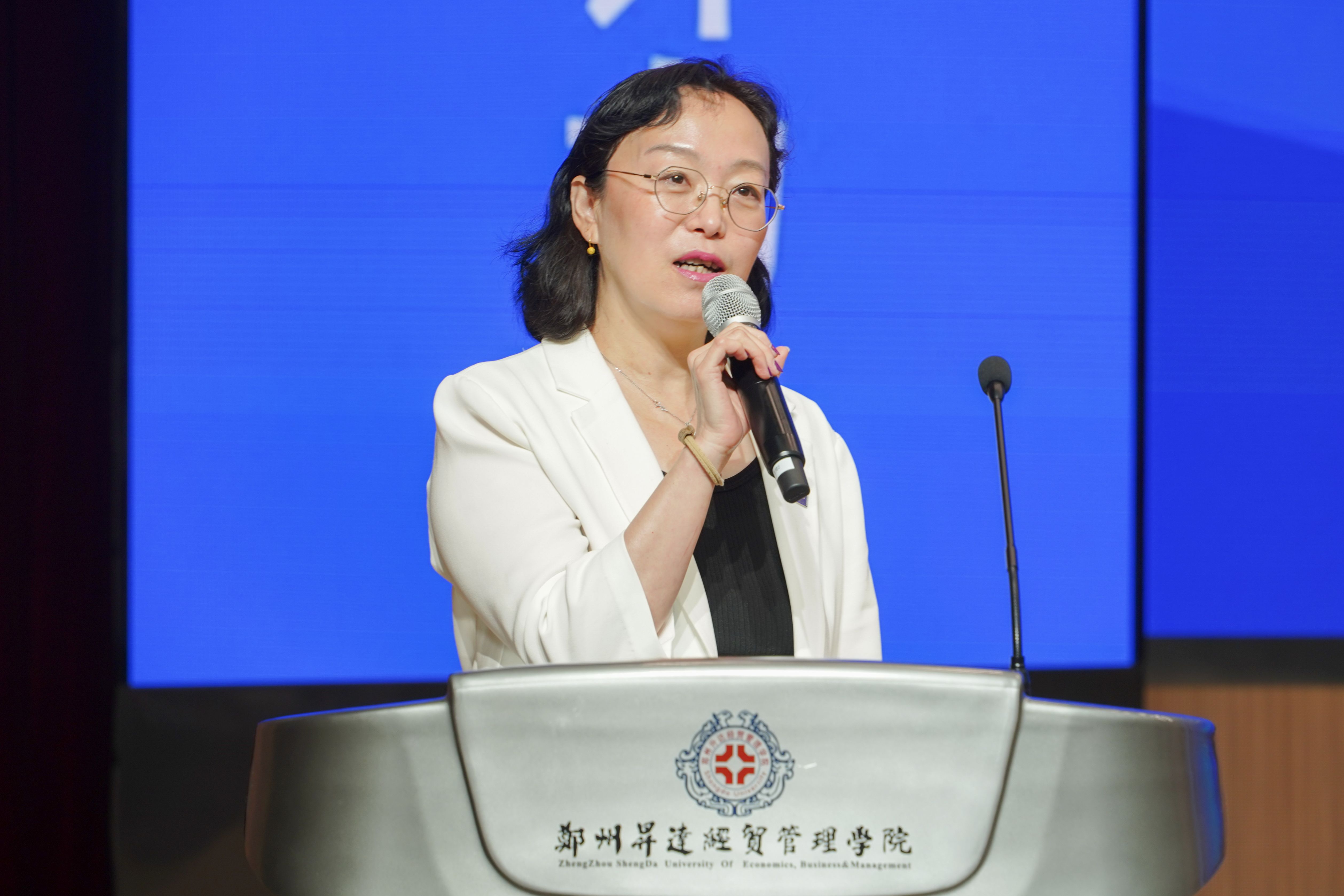 周靓总监代表IMA管理会计师协会致辞。周靓总监对IMA管理会计师协会近年来的发展进行了介绍,表示将继续加强与我校的合作,共同举办更多的学术交流活动,助力我校会计学省级重点学科的建设发展。