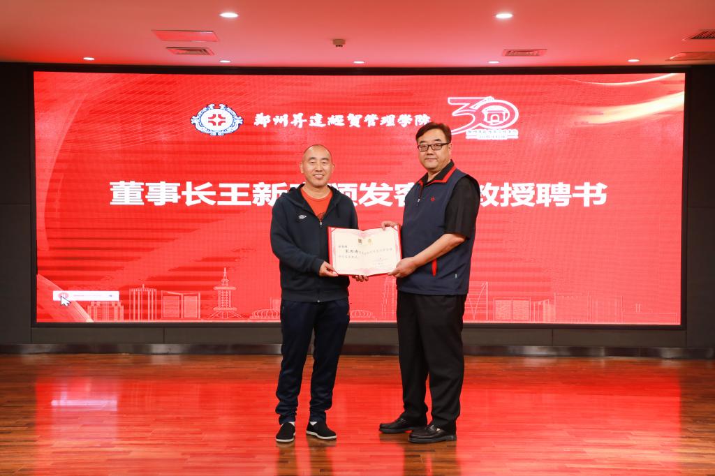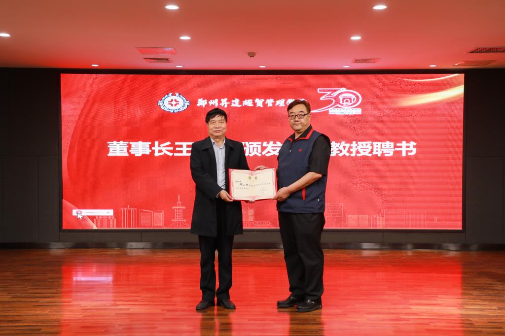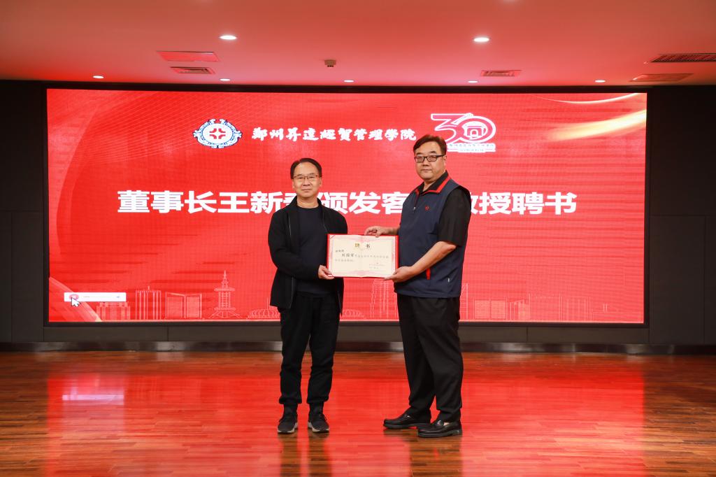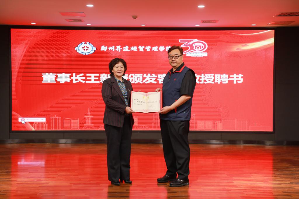 王新奇博士为薛玉莲教授、刘国常教授、宋丙涛教授、薛占熬教授颁发客座教授聘书。
