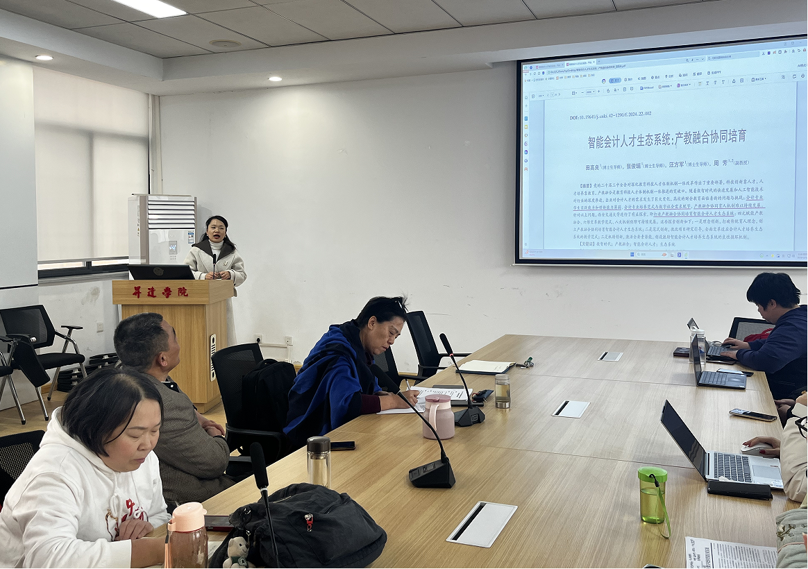 本次研讨会上,杨茂教授分享了题为《SCI/SSCI论文写作与投稿》的内容,重点讲解了英文论文写作的基本要素及投稿时需注意的相关事项。田丽丽老师则介绍了《智能会计人才生态系统:产教融合协同培育》,探讨了产教融合作为教育科技人才体制一体化推进的关键突破口。王燕霞老师的分享题为《管理会计数字化转型动因与路径——基于美的集团的扎根理论研究》,详细阐述了扎根理论在美的集团企业实践中的具体应用。刘金瑞老师则为大家讲解了《主成分分析》的原理与应用,并展示了在SPSS软件中进行操作的方法。研讨会上,参与者们进行了充分的交流与讨论。