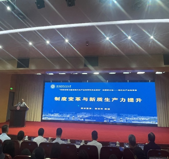 与会专家围绕现代化产业体系建设中的关键问题进行交流。对外经济贸易大学原副校长张新民教授结合典型案例分析了企业在现代治理体系下的战略选择与财务健康问题;北京工商大学原副校长谢志华教授提出通过体制机制创新释放生产力潜能;中国科学院数学与系统科学研究院副院长杨翠红教授聚焦价值链升级,探讨了如何构建具有韧性、安全性和竞争力的现代化产业体系;河南省社会科学院原院长张占仓教授剖析了改革驱动下激活市场活力的路径;河南财经政法大学李新安教授从现实基础、短板问题和突破路径三方面系统阐述了河南产业高质量发展的方向;河南财经政法大学管理学部执行部长王永伟教授分享了人工智能驱动产业升级的机制与前景。