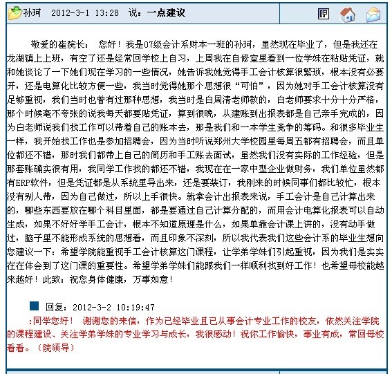 重视实践教学,提升就业能力—— 一位会计系校友的切身体会